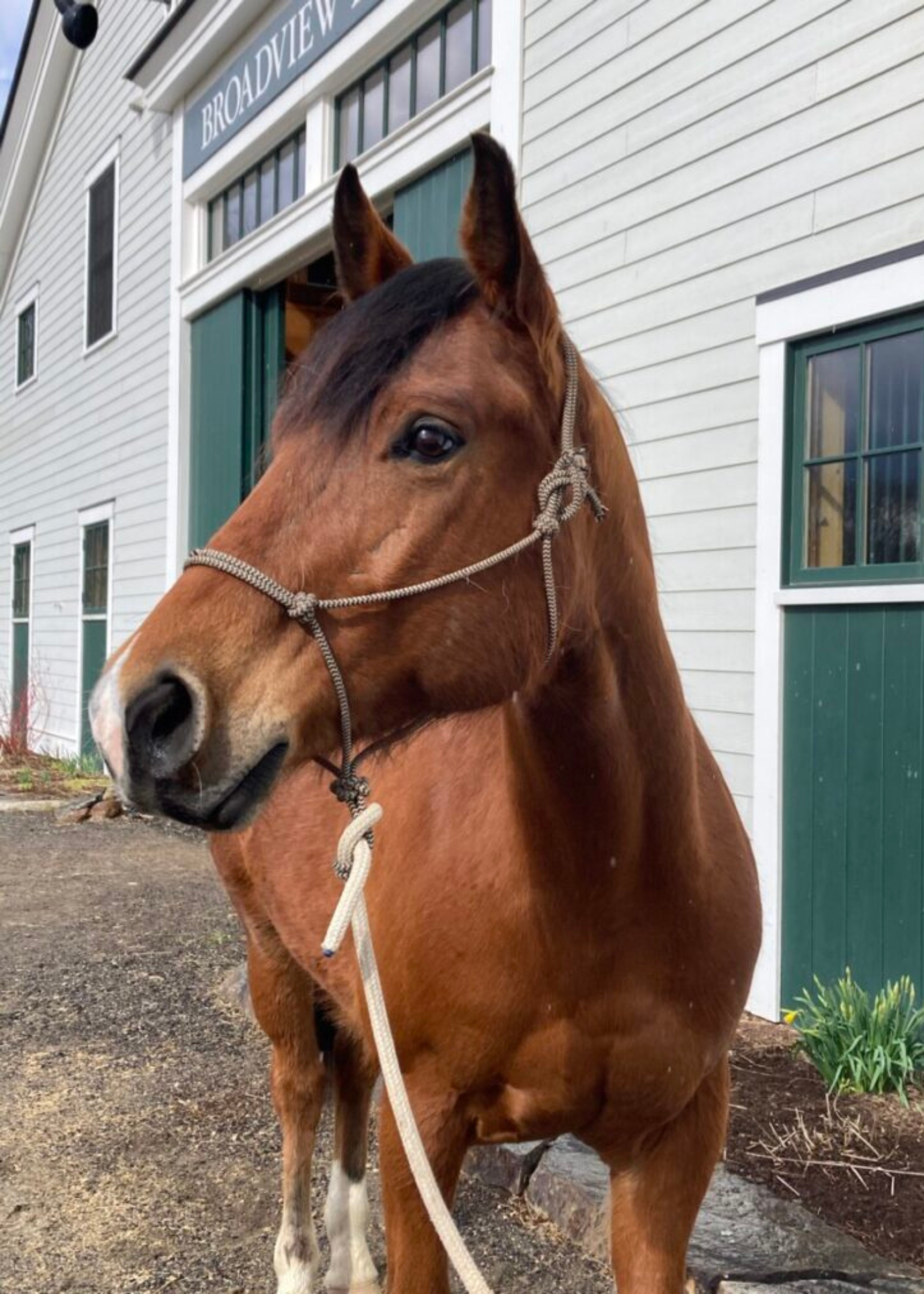The MSSPA welcomed its first horse from a domestic violence survivor in early February. Although the organization was not fully prepared to launch the service, a domestic violence shelter reached out in urgent need of placement, and MSSPA acted immediately. “He is an older guy, so of course we were worried a bit about how he would handle the whole event, trailering, coming to a new place. He has been a complete rockstar! He loaded right up, after some tearful goodbyes from this owner, and traveled about an hour and 40 minutes to the farm. He was immediately placed in a beautiful new stall with a run-in shed and a huge paddock, solo at first as he is in quarantine, but in sight of other horses.” explains Peg.